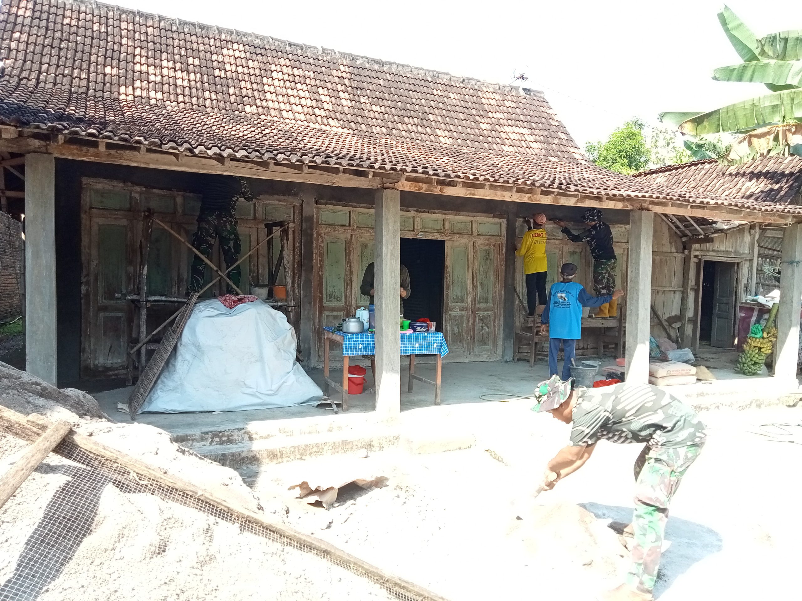 Babinsa Desa Puro menyebut, proses pembangunan terasa ringan karena dikerjakan bersama antara TNI dan warga.