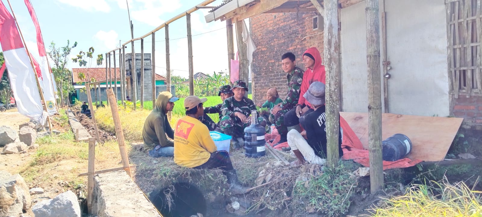 Meski fokus mengejar target pembangunan fisik, momen ringan ini dimanfaatkan untuk menjalin kedekatan dengan masyarakat. Suasana pun terasa lebih hangat dan akrab.