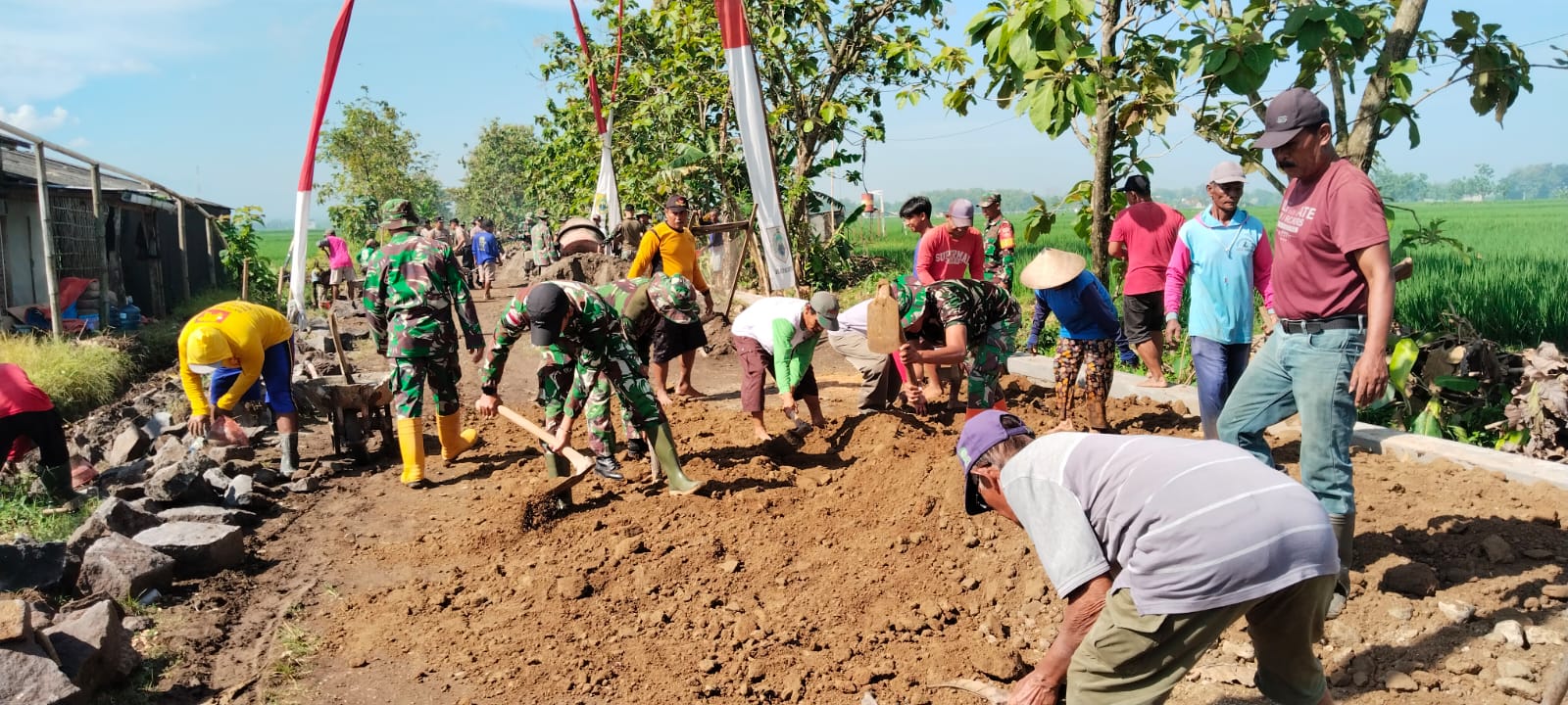 SRAGEN – Pembangunan talud sepanjang 150 meter menjadi salah satu sasaran fisik dalam program TMMD Reguler ke-128 Kodim 0725/Sragen. Talud ini dibangun di sisi kanan dan kiri jalan cor untuk mencegah erosi dan longsor di Desa Puro.